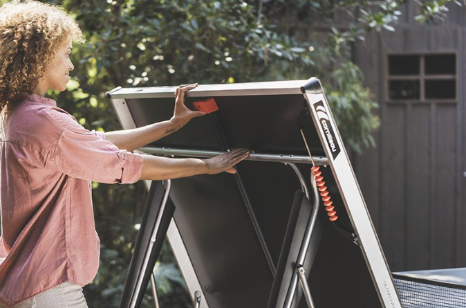 COMPACT SYSTEM - konstruktéři francouzské firmy Cornilleau vytvořili inovativní a velmi bezpečné systémy sklápění, které minimalizují riziko zranění při používání výrobků Cornilleau. COMPACT TECHNOLOGY® sklápěcí systém a nový DSI bezpečnostní systém snižují riziko samovolného rozložení stolu, eliminují možnost zranění dětí pohybujících se v blízkosti stolu a usnadňují skládání a rozkládání stolu. Při sklápění desky se současně narovnávají nohy stolu, u vyšších modelů 300 a výše se také souběžně napíná síťka, takže stůl je za 5 vteřin připraven ke hře!