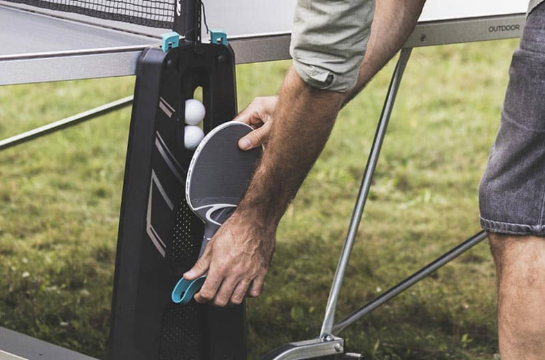 Model 100 X je vybaven velmi praktickými odkládacími přihrádkami. Po stranách stolu budete mít možnost uspořádat si rakety a míčky. Hru můžete spustit, kdykoli budete chtít, aniž byste je museli hledat
