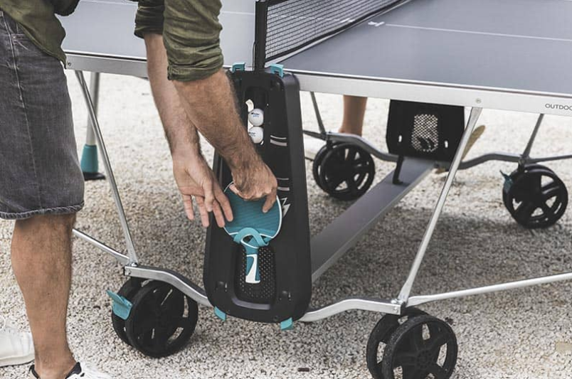 Model 200 X je vybaven velmi praktickými odkládacími přihrádkami. Po stranách stolu budete mít možnost uspořádat si rakety a míčky. Hru můžete spustit, kdykoli budete chtít, aniž byste je museli hledat
